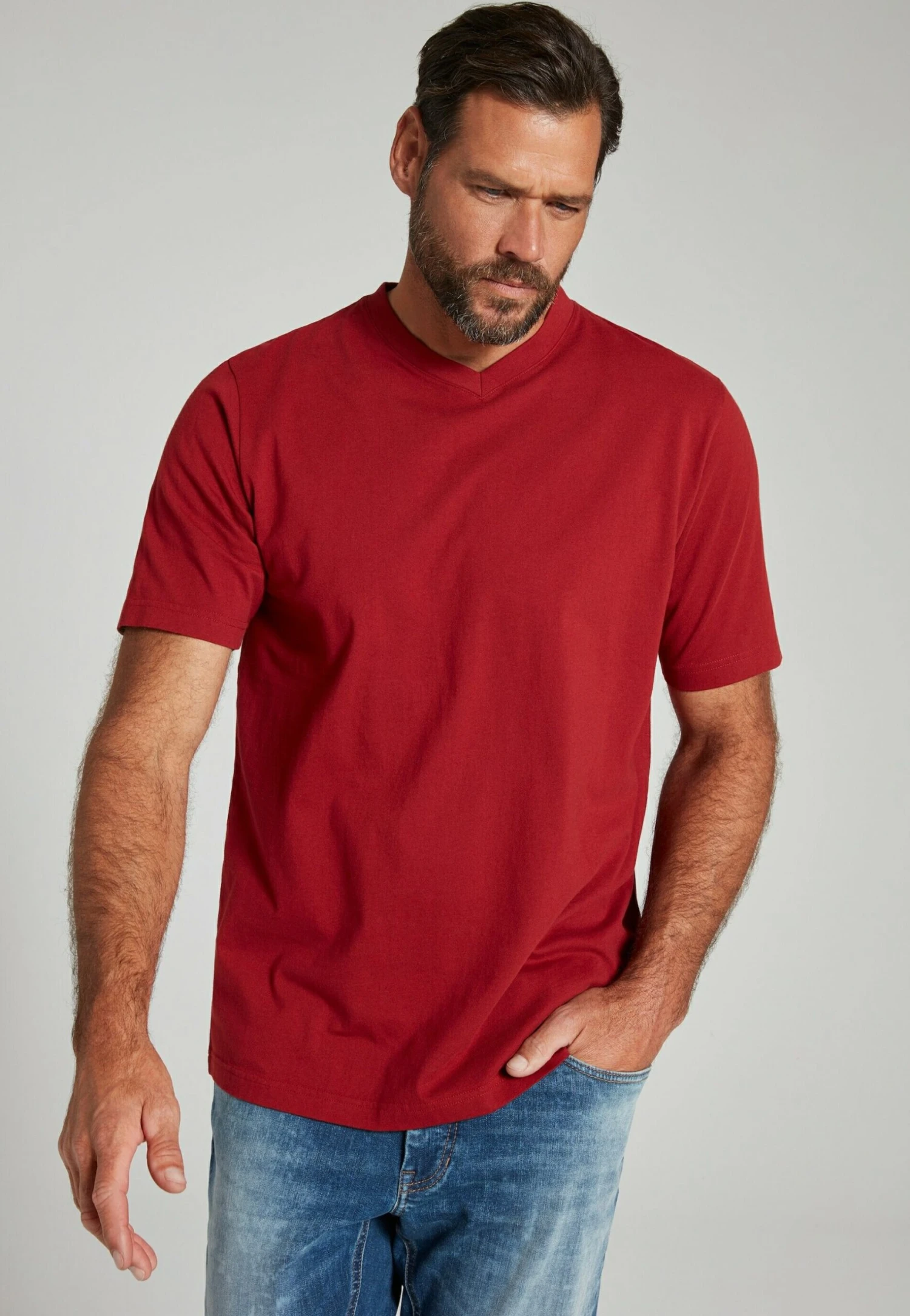 JP1880 Grosse Grössen Bis – T-Shirt Basic – Burgunderrot