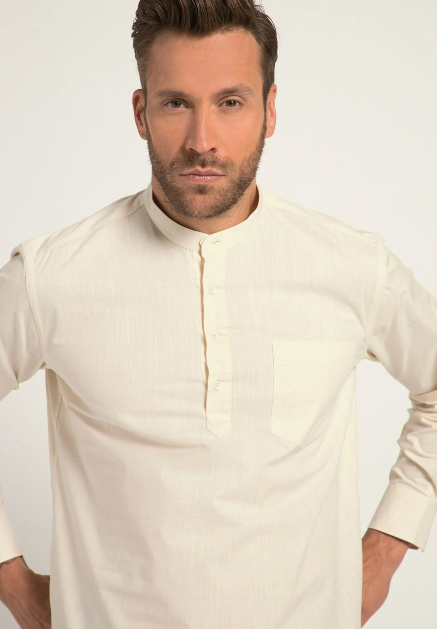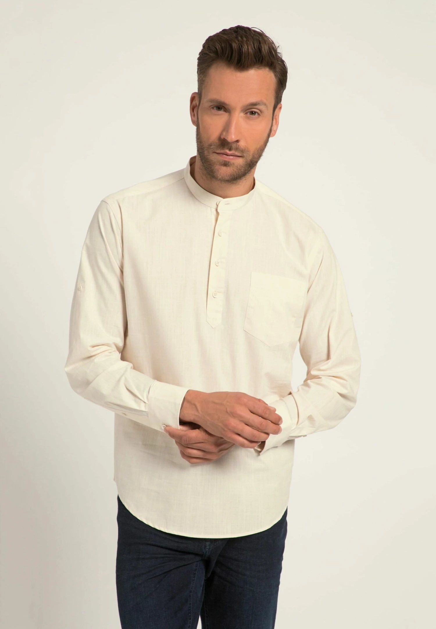 JP1880 Henley, Langarm, Modern Fit, Brusttasche, Rundhals – Overhemd – Beige