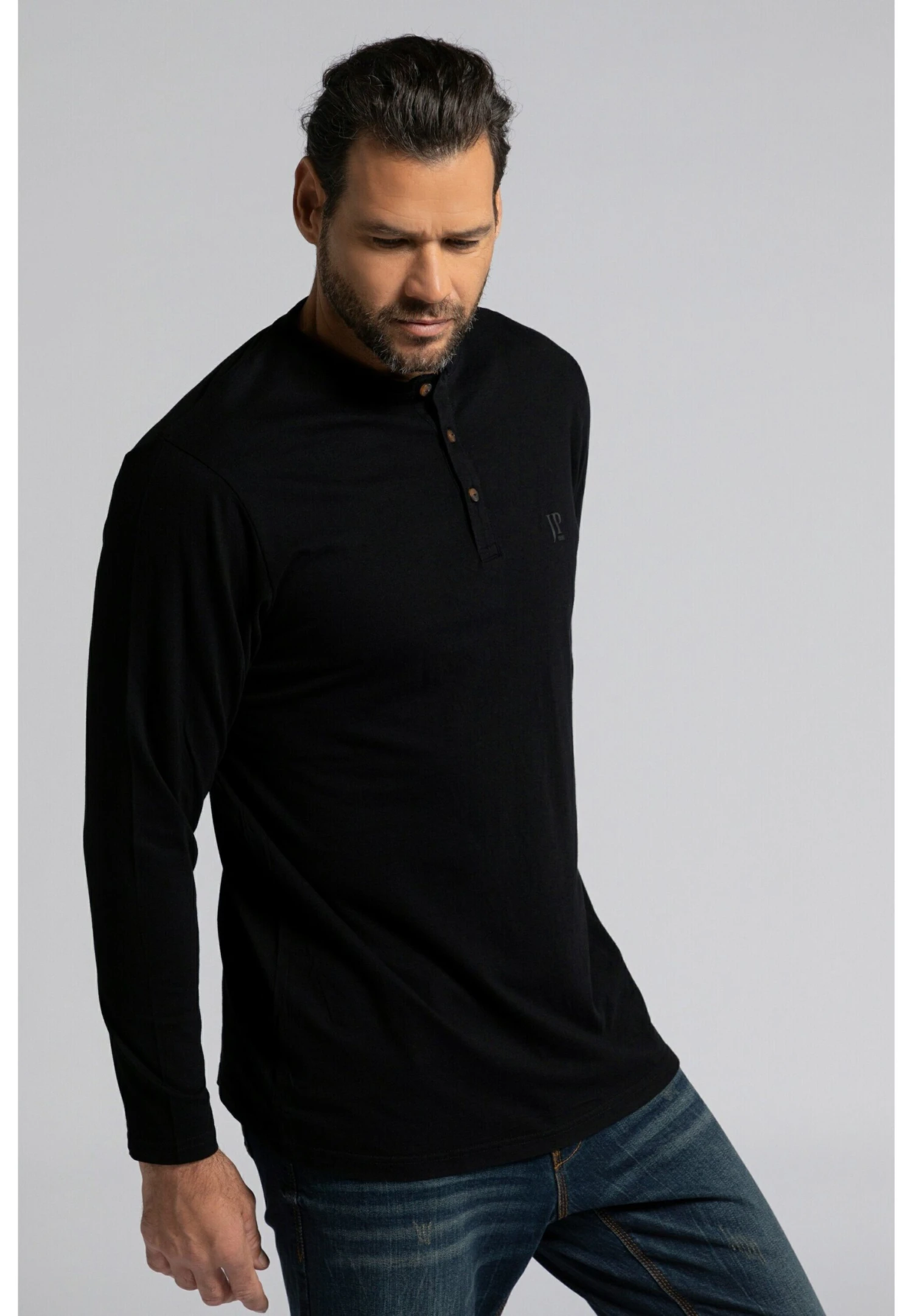 JP1880 Henley- Longsleeve – Black
