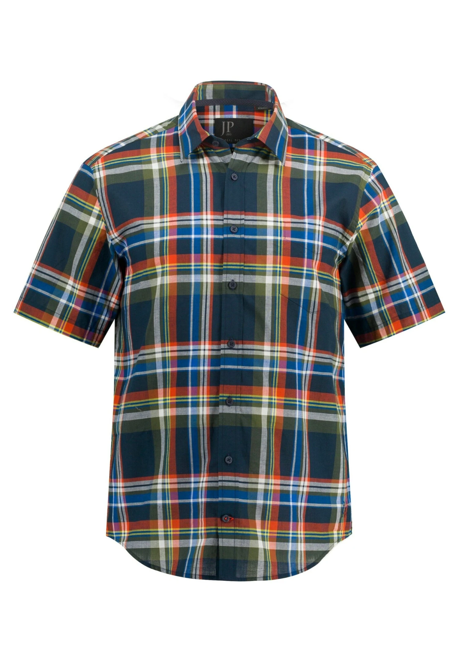 JP1880 Karo Halbarm Kentkragen Modern Fit – Overhemd – Navy Blau
