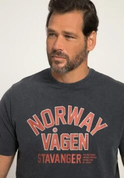 JP1880 Halbarm Vintage Look Rundhals – T-Shirt Print – Navy Blau