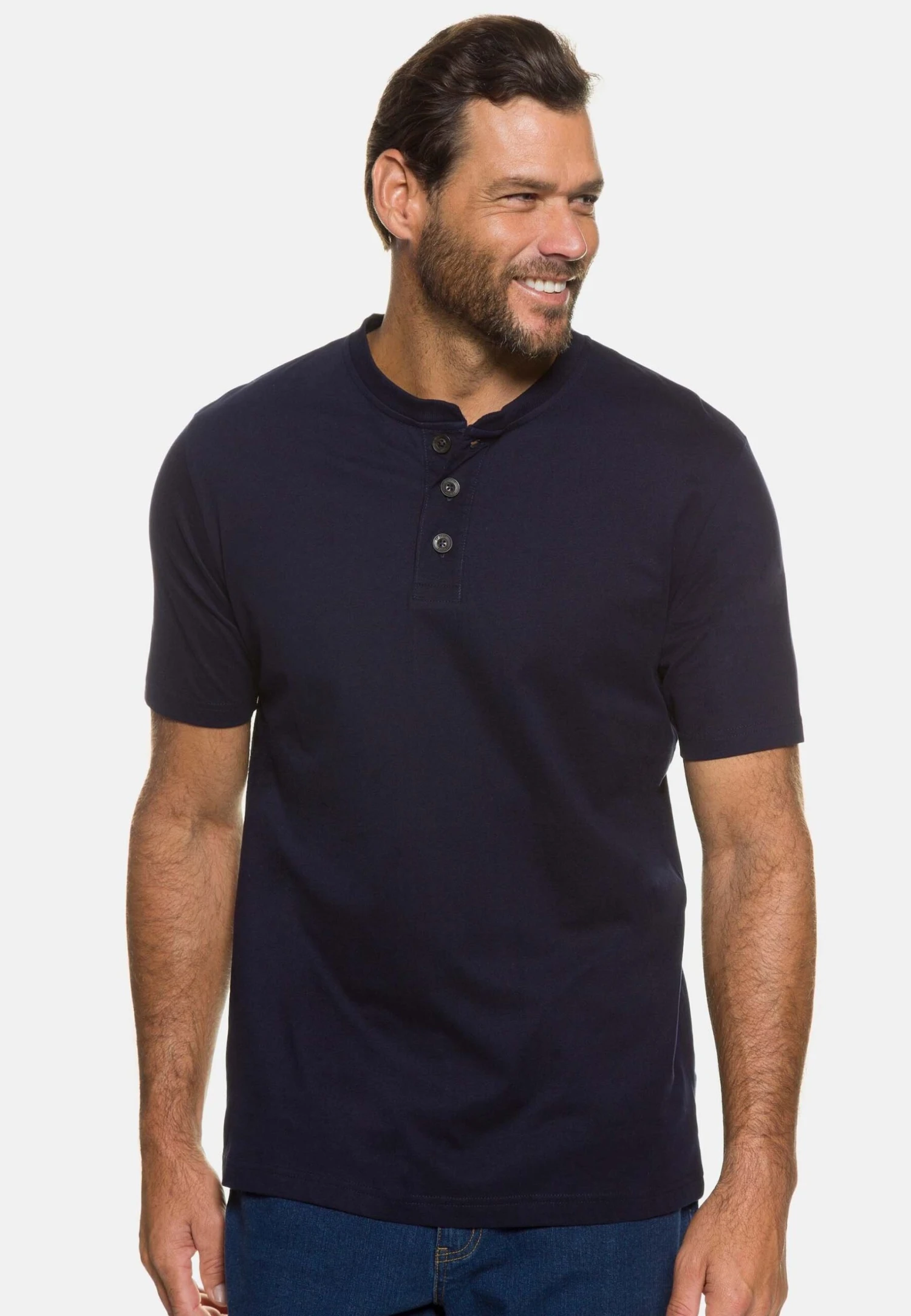 JP1880 Halbarm Vintage Look Rundhals – T-Shirt Print – Navy Blau